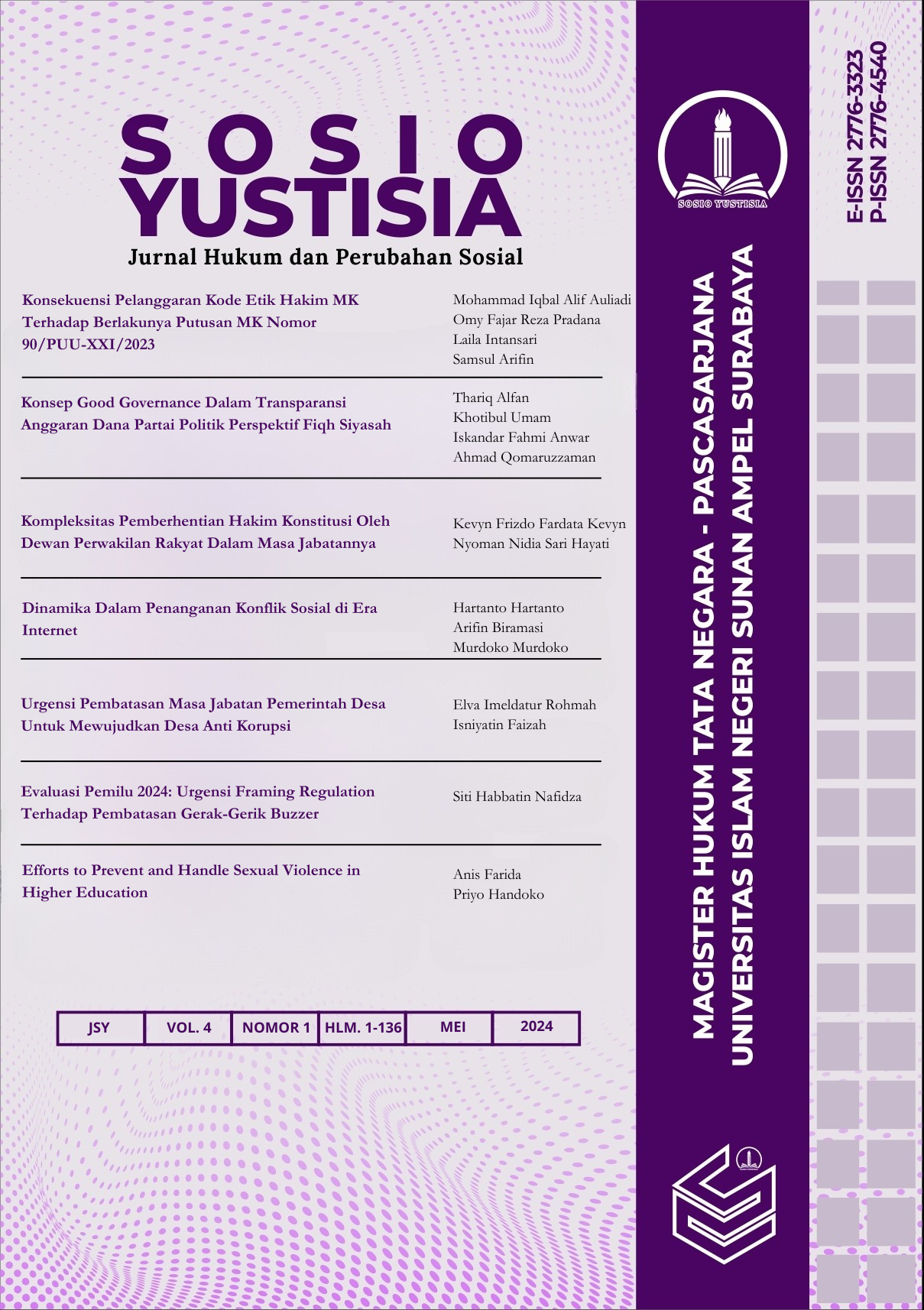 Pelaksanaan pemilihan umum (pemilu) harus menegakkan landasan asas luberjurdil (langsung, umum, bebas, rahasia, jujur, dan adil) sesuai dengan amanat konstitusi. Namun, fenomena buzzer yang menyebarkan informasi menyesatkan, ujaran kebencian, dan kampanye negatif di media sosial berpotensi melanggar asas bebas dan jujur. Aktivitas buzzer tersebut kerap dimanfaatkan oleh aktor-aktor politik untuk mempengaruhi opini publik dengan cara yang tidak etis. Meskipun telah diatur secara umum dalam UU ITE, belum ada regulasi yang secara khusus membatasi gerak-gerik buzzer dalam konteks pemilu. Untuk itu penelitian ini dimaksudkan untuk mengevaluasi urgensi pembentukan framing regulation guna membatasi aktivitas buzzer yang menyimpang dari asas-asas pemilu. Dengan menggunakan metode yuridis normatif, penelitian ini mengkaji fenomena buzzer, dampaknya terhadap integritas pemilu, serta merumuskan rekomendasi kebijakan yang tepat untuk mengatur aktivitas buzzer berdasarkan regulasi yang berlaku saat ini. Hasil penelitian diharapkan dapat memberikan kontribusi dalam memperkuat sistem demokrasi di Indonesia melalui pemilu yang berintegritas dan menjunjung tinggi asas-asas yang telah ditetapkan.